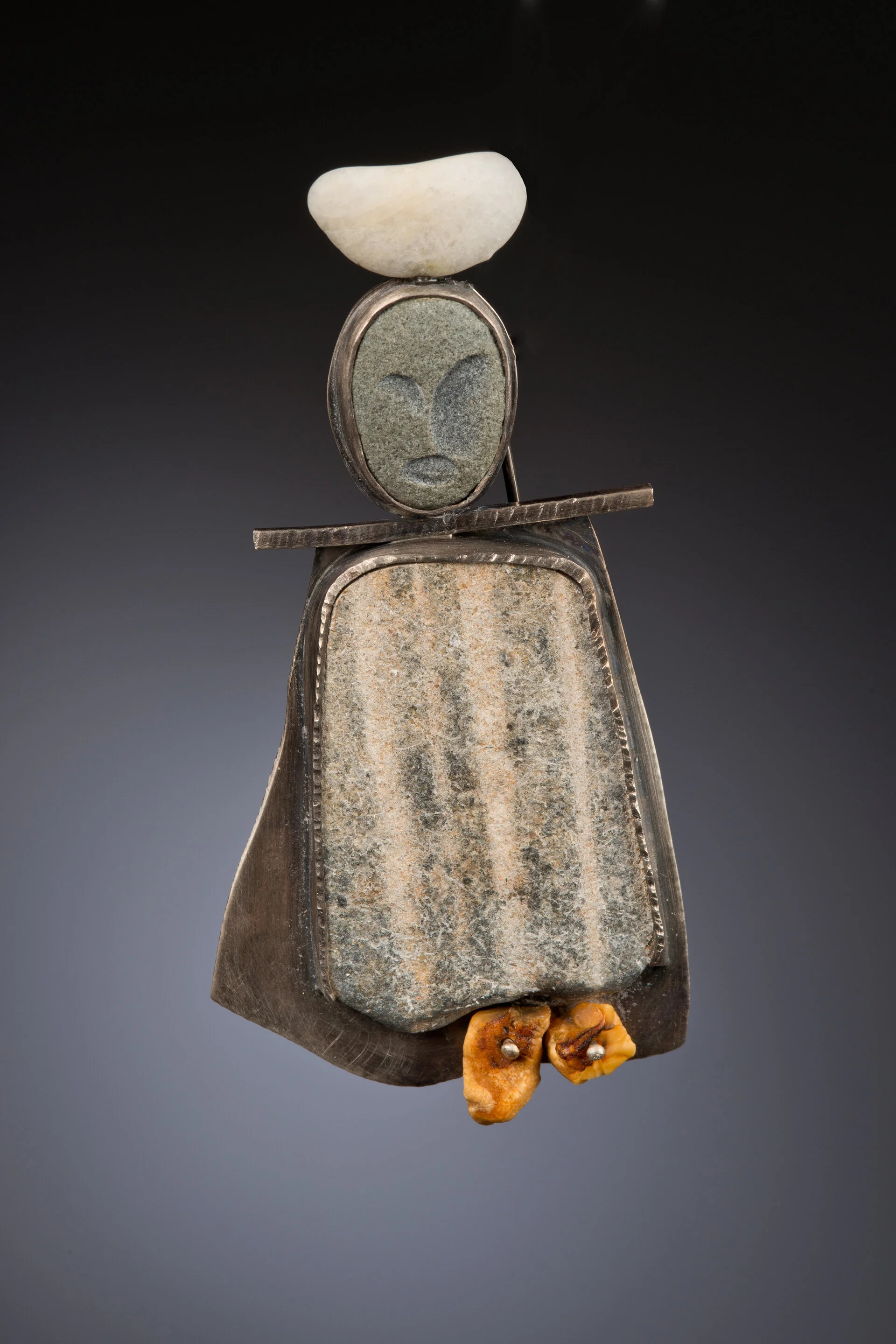 "Big Head Boy" Silver, beach pebble, sea glass, coral